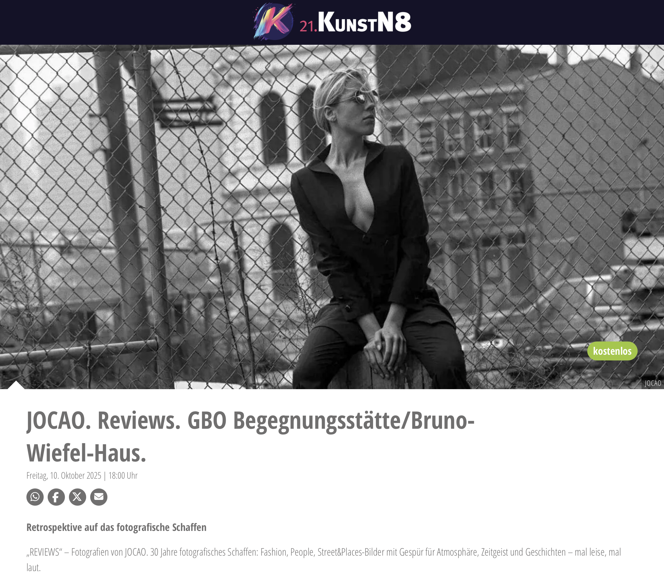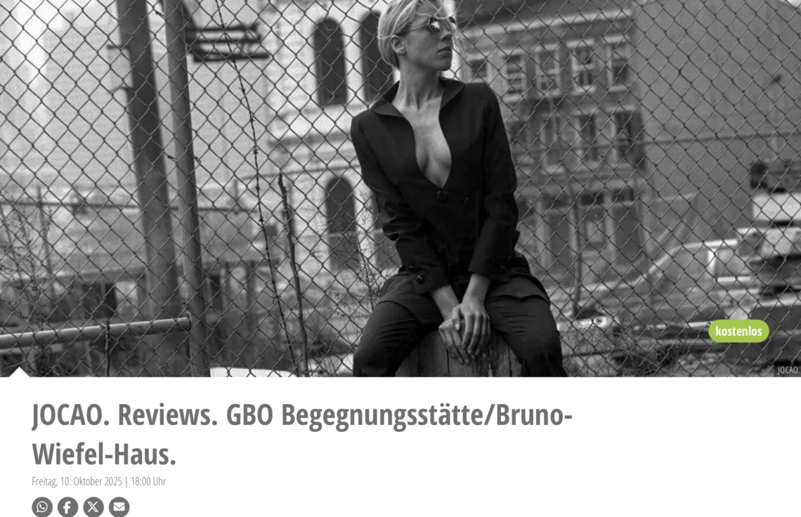 „REVIEWS“ – Fotografien von JOCAO. 30 Jahre fotografisches Schaffen: Fashion, People, Street&Places-Bilder mit Gespür für Atmosphäre, Zeitgeist und Geschichten – mal leise, mal laut.